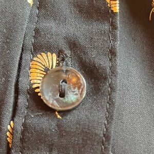 Luna Moon Buttoned Collared Tunic Black With Gold Colour Feathers Size Small 100% rayon