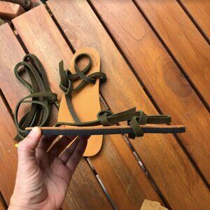 LUNA barefoot leather sandals in Moss green.