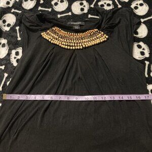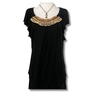 LUNDSTROM Black scoop neck beaded flutter sleeve top ~ Boho LARGE XL shirt tee