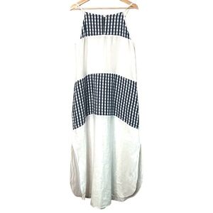 LUNGO L’ARNO 100% Linen Maxi Dress Spaghetti Straps Blue Gingham & White US Sz S
