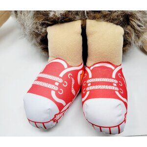 Nice pre-owned condition with a few flaws. Small hole in the arm where plastic tag used to be. A couple of stains or marks, one on the shoe and the other the arm that I have not attempted to get rid of. There is missing paint or fading of black paint on the eyes. Please see all pictures for further info.