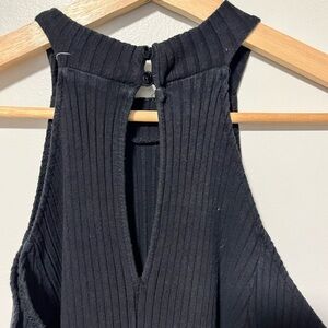 LUSH Black Ribbed Cold Shoulder Tie-Front Midi Dress - Small
