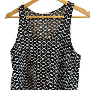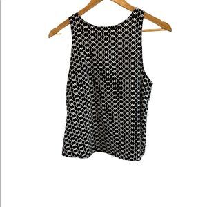 LUSH Black & White Link Print Sateen Scoop Neck Sleeveless Loose Tank Top M
