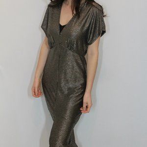 Tags: new years, holiday, sparkle, v-neck, bottom slit, short sleeve, long, midi