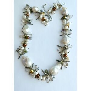LUXURIOUS White Baroque Pearl Swarovski Crystal long short necklace
