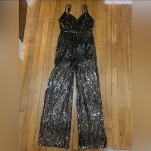 LUXXEL Riri Sequin Jumpsuit silver black mesh sparkly ✨