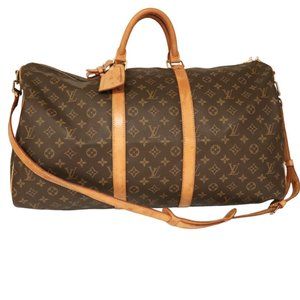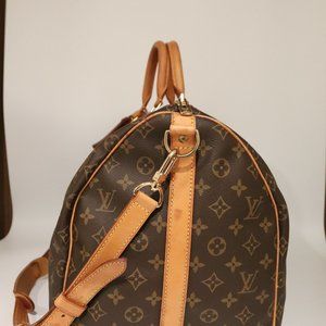 LV Keepall 55 + Strap Duffle Travel Gym Bag Brown Auth Monogram Louis Vuitton