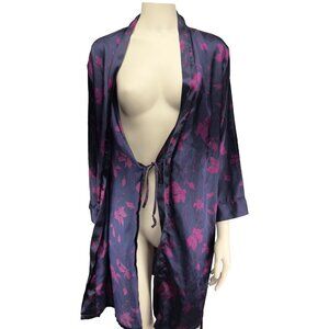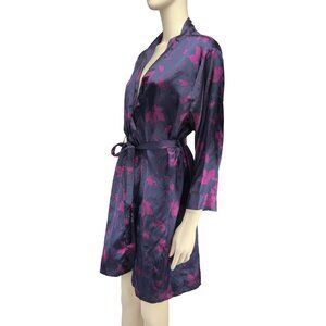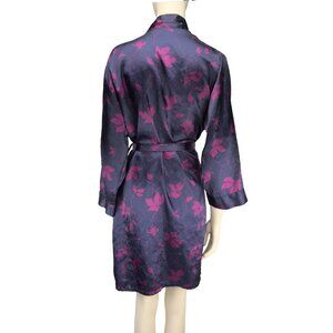 LVER Satin Purple and Pink Floral Kimono Bathrobe Robe sz S/M