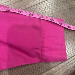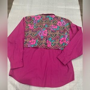 Pink shirt with floral accents. Features a classic collar and vibrant style.