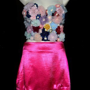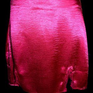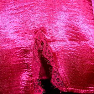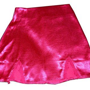 Satin silk, lace trim, high waisted, zip up mini skirt with slit at front for women and girls.
