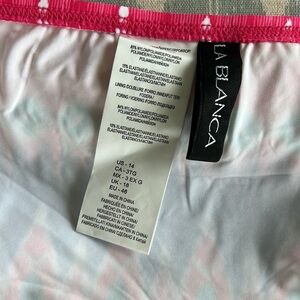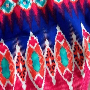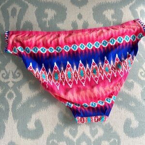 Pink, blue, orange, white and aqua pattern bikini bottom. Ruching at sides of waist. NWOT.