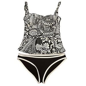 La Blanca Black Henna Tankini Top with Padding & Adjustable Straps