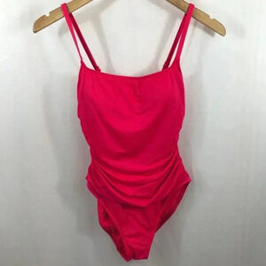 Bright pink and in great condition - the Island Goddess one piece from La Blanca. Featuring flattering shired side seams, removable cups, adjustable straps.