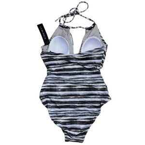 La Blanca Sz 4 Swimsuit Bamboo Striped HighNeck Cutout Halter One piece New NWT