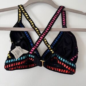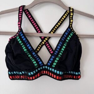 La Blanca Triangle Bikini Top Multicolored Threaded Black Swim Suit Bra Sz 4