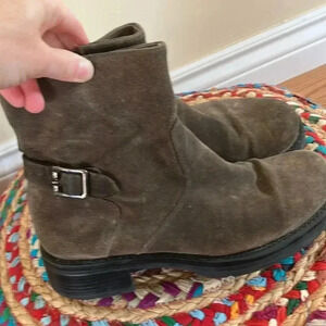 La CANADIENNE army green suede leather buckle moto boots