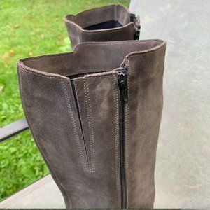 Grey 100% genuine suede knee-high boots with patent leather toe and back of ankle