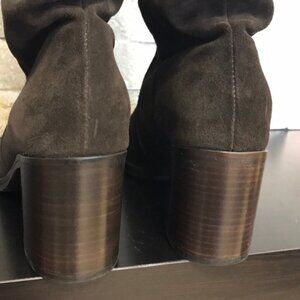 A slouchy shaft in supple Italian suede elevates the chic style of a waterproof round-toe boot handmade in Canada and lifted by a tall block heel.