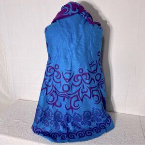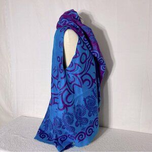 La Cera Blue Purple Swirl Patterned Reversible Shawl Poncho