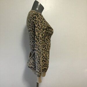 La Chapelle Leopard Print Deep V-Neck Button Front Cardigan Size XS