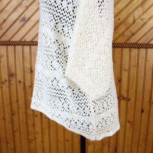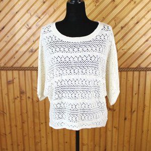 La Chapelle Sport Sweater White Silver Sequins Open Knit Large High Low CA136
