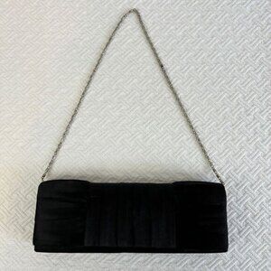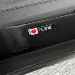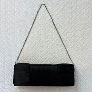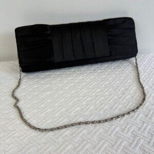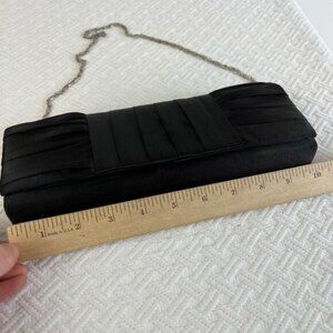 La Diva Black Satin Silver Tone Hardware Women's Clutch Shoulder Bag Purse
