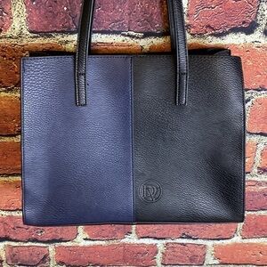 La Diva Italian Design Navy & Black Handbag Purse in excellent condition. It is a faux leather. Blue & white stripped lining with gold accents.