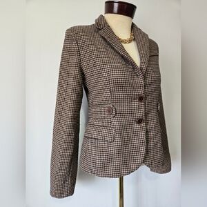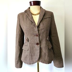 La Fée Maraboutée Wool Blend Houndstooth Blazer Jacket, Elbow Patches Size 38/ M