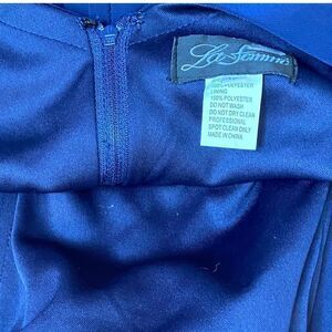 Look and feel like a timeless beauty in this La Femme 27872 creation. Exquisitely rendered in a rich jersey silhouette, this beauty reveals a v-neckline and framing short sleeves. The back is designed with a v-open style. Textured with a twist side knot along the natural waist, the slender A-line skirt streams to navigate to brush the floor with a full-length silhouette. Embrace an elegance that flourishes charm in this La Femme masterpiece.