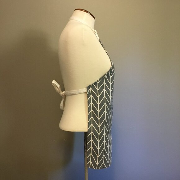 Good preowned condition, small grey and white apron featuring 'la la la love you' message. Single pocket, slip over neck that can be untied and adjusted and tie up at the back.