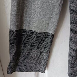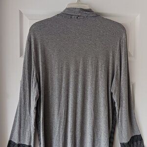 This La Madona Cardigan, is a versatile piece that seamlessly transitions from day to night. This cardigan features a unique graphic pattern with whimsical accents, rendered in a soothing gray hue that complements any outfit. It's crafted from a soft blend of rayon and spandex, ensuring both comfort and a flattering fit in a size 1XL. With its long casual sleeves and stylish collared neckline, this cardigan is ideal for various occasions, from business meetings to casual outings or even formal events. The beaded details add a touch of elegance, making it a standout addition to your collection. Whether you're dressing for the cooler seasons of fall, spring, or winter, this cardigan is sure to be a go-to in your closet.