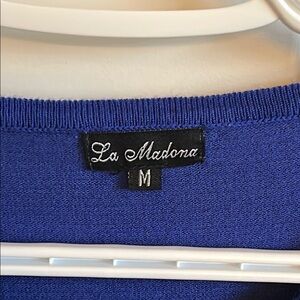 La Madona Women's Blue Crew Neck Sparkly 3/4 Sleeve Sweater, size M