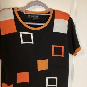 La Madona Women's Short Sleeve Pullover Sweater Top Size L Color Block