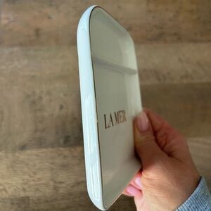 Exclusive La Mer Jewelry Dish. Cream with gold accents and trim.
