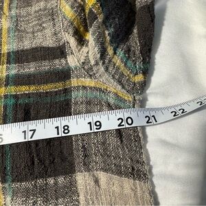 La Miel Oversized Button Down Long Sleeve Shirt Plaid Fringe Hem Size Small