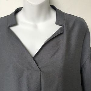 La Mine Dor Blouse Gray Long Sleeve Pop Over Top Split Sides Loose Fitting XL