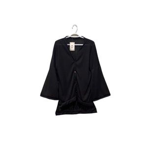 New with tags La Mode black semi-sheer kimono cardigan with oversized bell sleeves in women’s size medium / large.