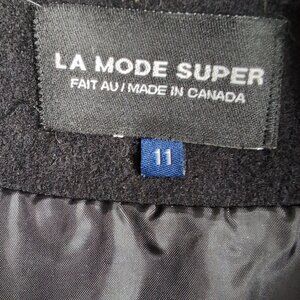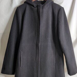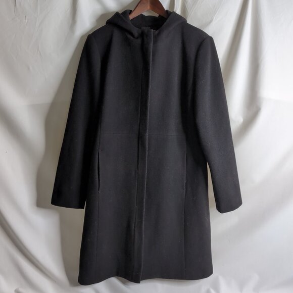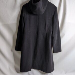 La Mode Super Women's Black Wool Trench Coat with Hood, Size 10-12