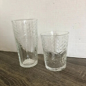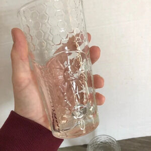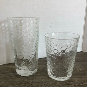 Heavy glass, made in France. Very good quality, La Rochere are the makers of the famous “bee glass”. This pattern is called Soleil and I believe it’s from 2017 (based on preliminary research). Design is a sort of honey comb pattern with a sun.