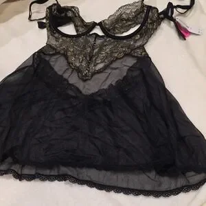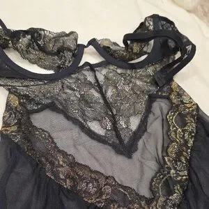 La SENZA Black and Gold Lace Unlined Baby Doll S
