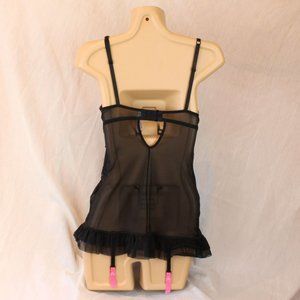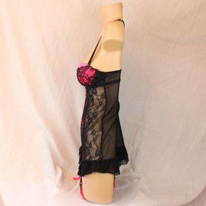 La SENZA Lightly Lined Merry Widow Corset Lingerie Small Black Pink Lace T69