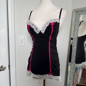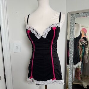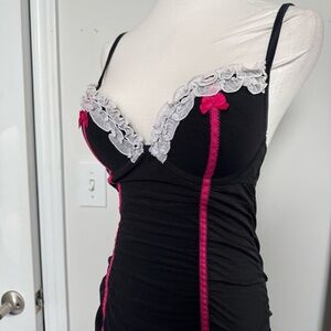 La SENZA y2k Black and Pink Chemise with Lace Trim coquette corset slip dress S