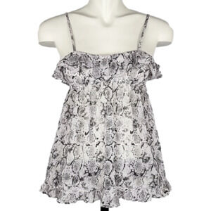 La Senza 2 Piece Baby Doll Set Semi Sheer Reptile Print Ruffles Size XS