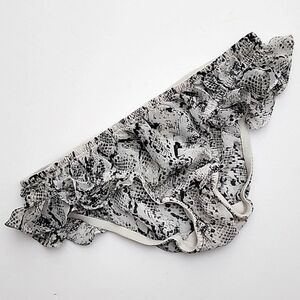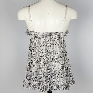 Excellent pre-owned condition, La Senza 2 piece baby doll set made with a lightweight semi sheer gabric with a reptile print, adjustable shoulder straps and a pretty ruffled top border, size XS.