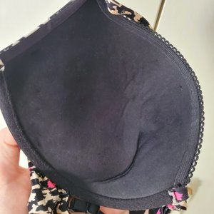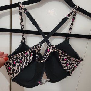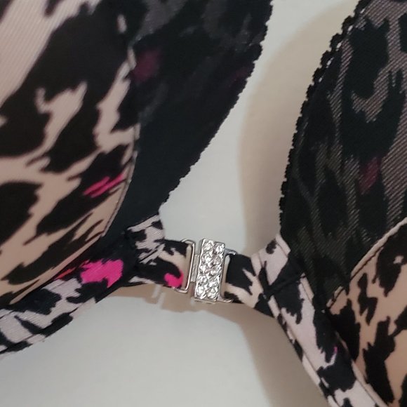 La Senza - 36B - Pink Leopard Print Bra w/ Rhinestone Front Clasp - Push Up