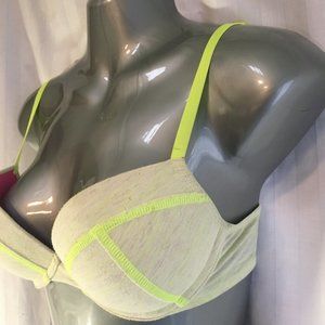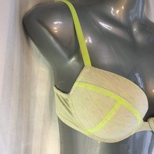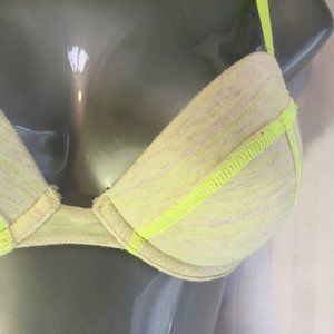 La Senza Bra Remix Size 32C Neon Green Gray Jersey Padded Push Up Plunge