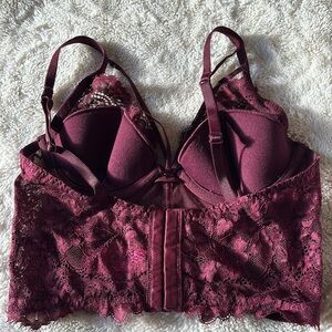 La Senza Burgundy Lace Bralette – XS | Sheer Mesh | Sexy Intimates |