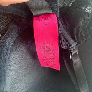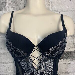 La Senza Bustier Corset Top Black Mesh Silver Metallic Lace