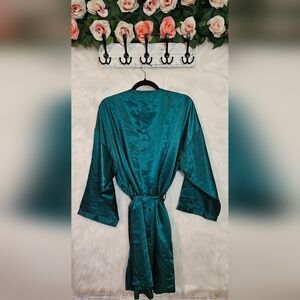 La Senza Classic Teal Satin Mini Robe w/Tie Belt