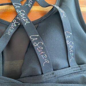 La Senza Cross Back Strap Glitter Mesh Cut Out Black Sports Bra